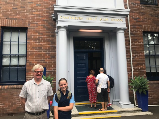 G started high school today. We got her there in time. She managed to give us the slip in the foyer after a hug and a kiss goodbye, and find her friends from primary school. We eventually located her across the hall (without making eye contact or waving or anything) and sat elsewhere for the bit of the Welcome Assembly where parents were indeed welcome, at least by the school itself if not our offspring!