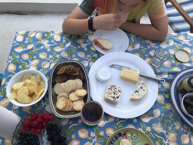 We call it Picnic Dinner, thanks to our holiday in Greece a couple of years ago. There, we found ourselves staying in small apartments without kitchens. Calling platters picnics made it fun. Small supermarkets had all we needed.